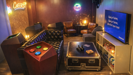 Ce salon, à mi-chemin entre bar à jeux, salle de karaoké et plateau TV, est l’endroit idéal pour partager une parenthèse unique entre amis, collègues ou en famille.